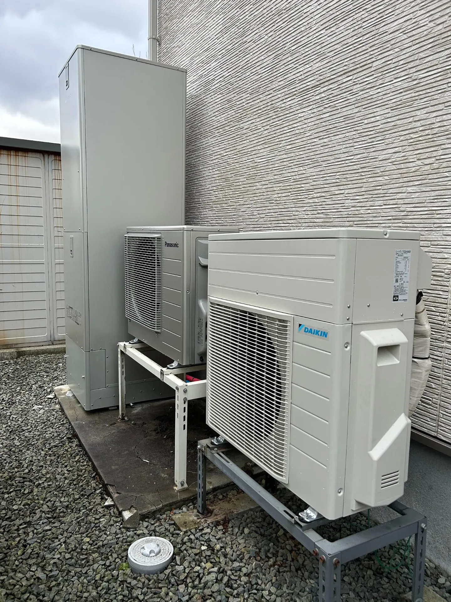 エコキュート・ヒートポンプ床暖房・暖房エアコンの更新工事を行いましたのでご紹介いたします。